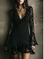 Women's Mini Dress Velvet Dress Vintage Dress Prom Dress Party Dress Elegant Fashion Modern Evening Party Party Cocktail Party Regular Fit Plain Long Sleeve V Neck Black Summer Spring Fall