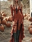 Women's Midi Dress Boho Dress Western Dress Fashion Modern Outdoor Vacation Holiday Regular Fit Plain Long Sleeve V Neck Orange Summer