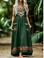 Women's Maxi Dress Boho Dress Floral Dress Vintage Fashion Modern Outdoor Vacation Going out Regular Fit Floral Sleeveless V Neck Dark Green Summer Spring