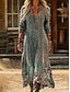 Women's Midi Dress Boho Dress Vintage Dress Casual Dress Vintage Classic Modern Daily Outdoor Vacation Loose Fit Floral Long Sleeve V Neck Green Spring Autumn