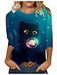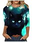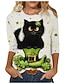 St. Patrick's Day Women's T shirt Tee Black White Yellow Cat Ruffle Print Long Sleeve Daily Weekend Basic Round Neck Regular Cat Painting S