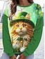 St. Patrick's Day Women's Sweatshirt Cat Street Print Casual Crew Neck Long Sleeve Micro-elastic Spring & Fall