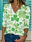 St. Patrick's Day Women's Lucky T Shirt V Neck Long Sleeve Graphic Casual Shamrock Fashion Regular Tops St.Patrick's Day Print Grass Green White Light Green Dark Green Green Spring & Fall