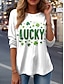 St. Patrick's Day Women's Lucky T Shirt Shamrock Casual Long Sleeve Crew Neck Long Tops Daily Print Green Spring & Fall