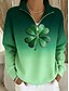 St. Patrick's Day Women's Pullover Zip Up Sweatshirts Graphic Shamrock Fashion Casual Long Sleeve Half Zip Regular Tops Casual Dailywear Drawstring Print Green Spring Fall