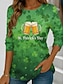 St. Patrick's Day Women's T Shirt Shamrock Fashion Funny Long Sleeve V Neck Regular Tops St.Patrick's Day Casual Holiday Print Green Spring & Fall