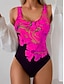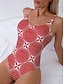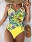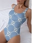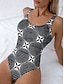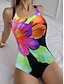Women's Swimwear One Piece Briefs Swimsuit Beach Wear Summer Floral Graphic U Neck Sleeveless Bathing Suits