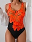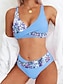 Women's Swimwear One Piece Monokini Swimsuit Backless Tummy Control High Waist Slim Vacation Beach Wear Floral V Neck Sleeveless Bathing Suits