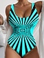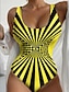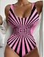 Women's One Piece Swimsuit Slimming Briefs Beach Wear Summer Graphic Striped U Neck Sleeveless Bathing Suits