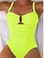 Women's Swimwear One Piece Monokini Swimsuit Mesh Backless Tummy Control High Waist Slim Vacation Beach Wear Solid Color V Neck Sleeveless Bathing Suits