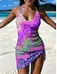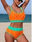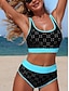 Women's Bikini 2 Piece Swimsuit Colorblock Printing Vacation Beach Wear Graphic Sleeveless Bathing Suits