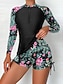 Women's Rash guard Swimsuit Patchwork Printed 2 Piece Front Zip Spandex UV Sun Protection UPF50+ Quick Dry Long Sleeve Swimwear Swimsuit Surfing Beach Water Sports Summer
