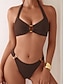 Women's Swimwear Bikini 2 Piece Cheeky Swimsuit Slim Backless Vacation Beach Wear Solid Color Halter Neck Sleeveless Bathing Suits