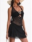 Women's Swimwear Stretchy Boxer Shorts Skirt Swimsuit Mesh High Waist Vacation Beach Wear Solid Color Sleeveless Bathing Suits