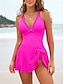Women's Tankini 2 Piece Swimsuit Ruched with Skirt Cheeky Ruffle Tummy Control High Waist Slim Backless Elegant Vacation Solid Color V Neck Sleeveless Bathing Suits
