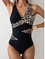 Women's Swimwear One Piece Monokini Briefs Swimsuit Tummy Control High Waist Slim Backless Vacation Vintage Graphic Leopard V Neck Sleeveless Bathing Suits