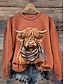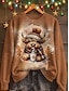 Γυναικεία Φούτερ Γραφική Ζώο Ζεστό Κλασσικό Καθημερινό Μακρυμάνικο Στρογγυλή Ψηλή Λαιμόκοψη Κανονικά μπλουζάκια Δρόμος Causal Αργίες Στάμπα Κίτρινο Πορτοκαλί Χακί Φθινόπωρο Χειμώνας