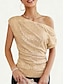 Γυναικεία Μπλούζα Συμπαγές Χρώμα Στυλάτο Καθημερινό Κοντομάνικο Ασύμμετρο Κανονικά μπλουζάκια Καθημερινά Πούλιες Μαύρο Λευκό Βυσσινί Χρυσό Πράσινο του τριφυλλιού Καλοκαίρι Άνοιξη