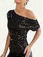Γυναικεία Μπλούζα Μπλουζάκια με παγιέτες Συνδυασμός Χρωμάτων Στυλάτο Μοντέρνα Μακρυμάνικο Στρογγυλή Ψηλή Λαιμόκοψη Κανονικά μπλουζάκια Αργίες Εξόδου Πούλιες Κουρελού
