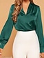 Γυναικεία Πουκάμισο Κομψή Φιλάρεσκος Σατέν Συμπαγές Χρώμα Κομψό Στυλάτο Βασικό Μακρυμάνικο Λαιμόκοψη V Κανονικά μπλουζάκια Καθημερινά Εξόδου Πράσινο του τριφυλλιού Άνοιξη Φθινόπωρο