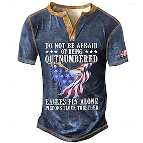 4. července 2026 250. výročí Dne památky Pánské vintage retro designérské tričko Henley krátký rukáv každodenní městský styl