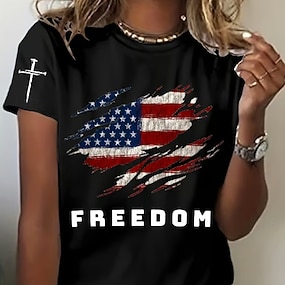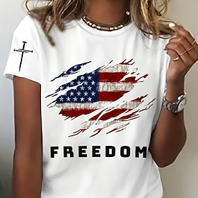 Americký den nezávislosti Dámské Tričko Tisk Grafika Písmeno Americká vlajka stylové Klasické Na běžné nošení Krátký rukáv Tričkový Běžné topy Denní Černá Léto Jaro