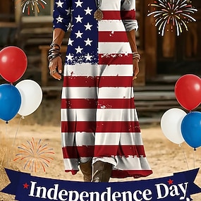 Americký den nezávislosti Dámské Dlouhé šaty Maxi šaty Slip Dress Fit A Flare šaty prázdniny Na běžné nošení Plážový styl Studené rameno Dovolená Běžný Grafika Vlajka Bez rukávů Ramínka Kopeček Vodn