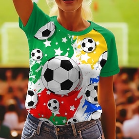 Dámské Tričko Tisk Grafika Fotbalový tým stylové Klasické Na běžné nošení Krátký rukáv Do V Běžné topy Denní Vodní modrá Černá Bílá Rubínově červená Trávová zelená Léto Jaro