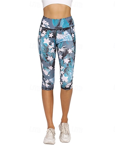 Dámské Kalhoty na jógu Butt Lift Zaštíhlující Vysoký pas Cvičení v tělocvičně Běh Zdatnost Cyklistické kalhoty Legíny Květiny Tmavě námořnická Podzim Zima Sportovní Sportovní oděvy Vysoká pružnost
