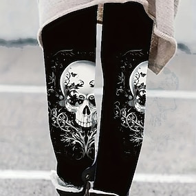 Ženské legíny na dovolenou vintage móda plné délky vysoký pas grafika lebky potisk měkký prodyšný vysoká elasticita formální venkovní dovolená fialová jaro podzim zima úzký střih
