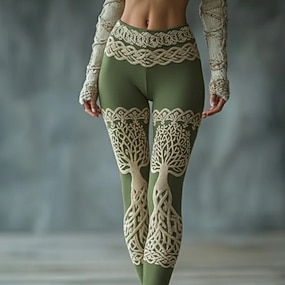 Dámské Viking Legíny Pohodlné legíny prázdniny Vinobraní Etnický styl Plná délka Vysoký pas Grafika Potisk Pohodlné Vysoká pružnost Ležérní Denní Dovolená Trávová zelená Jaro Podzim Slim