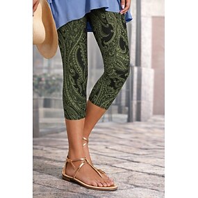 Dámské Kalhoty chinos Legíny prázdniny Vinobraní Šik ven Capris Vysoký pas Květinový Grafika Kašmírový vzor Potisk Pohodlné Yumuşak Elastické Denní Venkovní Dovolená Trávová zelená Léto Jaro Podzim