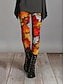 Dámské Legíny Pohodlné legíny prázdniny Na běžné nošení Plná délka Vysoký pas Grafika S lístky Potisk Pohodlné Elastické Ležérní Denní Dovolená Oranžová Jaro Podzim Vypasovaný