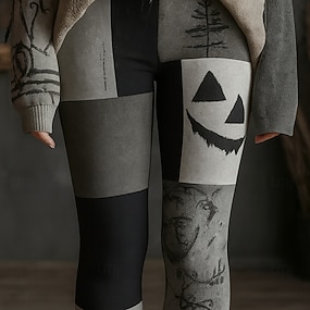 Legíny pro ženy dovolená vintage móda dlouhé vysoký pas grafika lebky tištěná měkká prodyšná elastická venkovní dovolená ulice černá bílá černobílá jaro podzim zima slim fit