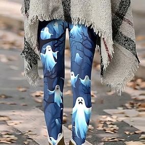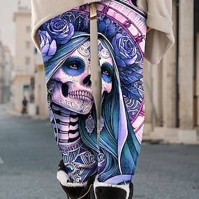 Dámské Legíny prázdniny Vinobraní Etnický styl Plná délka Vysoký pas Grafika Lebky 3D tisk Rychleschnoucí Prodyšnost Yumuşak Elastické Denní Domů Venkovní Vodní modrá Růžová Fialová Trávová zelená