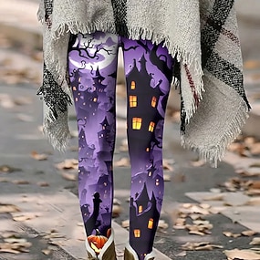 Dámské Legíny Pohodlné legíny prázdniny Vinobraní Na běžné nošení Plná délka Vysoký pas Grafika Abstraktní Potisk Pohodlné Elastické Ležérní Denní Dovolená Fialová Jaro Podzim Zima Slim