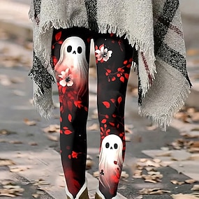 Ženské legíny dovolená vintage móda plné délky vysoký pas grafika tisku lebky měkké prodyšné vysoká elasticita venkovní pouliční neformální černá jaro-podzim-zima slim fit