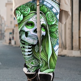 Dámské legíny na dovolenou vintage móda dlouhé vysoký pas grafický potisk lebky měkké prodyšné elastické formální nošení na dovolenou městské off-white jaro podzim zima úzký střih