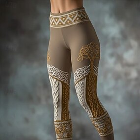 Dámské Viking Legíny Pohodlné legíny prázdniny Vinobraní Etnický styl Plná délka Vysoký pas Grafika Potisk Pohodlné Elastické Ležérní Denní Dovolená Trávová zelená Jaro Podzim Slim