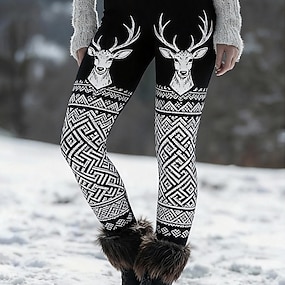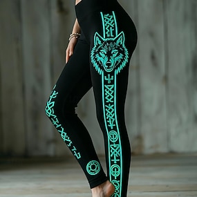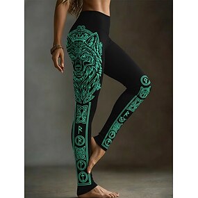 Dámské Viking Legíny Pohodlné legíny prázdniny Vinobraní Etnický styl Plná délka Vysoký pas Grafika Zvíře Potisk Pohodlné Elastické Ležérní Denní Venkovní Černá Jaro Podzim Zima Slim