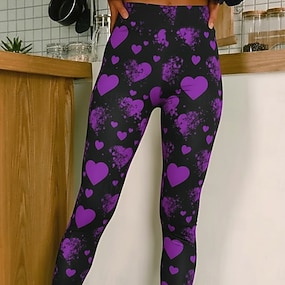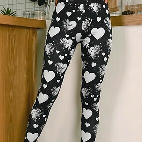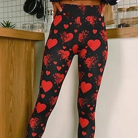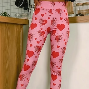 Dámské Legíny Pohodlné legíny prázdniny Na běžné nošení Plná délka Vysoký pasPantsValentýn Grafika Potisk Pohodlné Elastické Ležérní Denní Dovolená Rubínově červená Jaro Podzim Vypasovaný