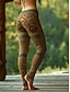 Dámské Legíny Pohodlné legíny prázdniny Vinobraní Etnický styl Plná délka Vysoký pas Grafika Potisk Pohodlné Vysoká pružnost Ležérní Denní Dovolená Tmavěhnědá Hnědá Trávová zelená Jaro Podzim Slim