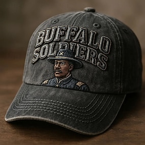 Klobouk s motivem vojáka Buffalo, vintage čepice s vyšívaným vojenským designem, nastavitelná retro baseballová čepice, pánské a dámské vojenské dědictví, vlastenecký klobouk pro běžné nošení i
