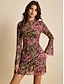 Dámské Mini šaty Boho šaty Westernové šaty Módní Klasické Moderní Venkovní Dovolená Jdeme ven Běžný Bez vzoru Dlouhý rukáv Do V Rubínově červená Léto