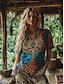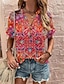 Dámské Boho tričko grafické geometrické elegantní Bohemia vintage dlouhý rukáv V-neck regulární topy každodenní víkendový 3D potisk modrá červená fialová zelená léto jaro podzim zima
