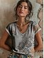 Dámské Tričko Tisk Květinový Grafika Graffiti Čechy Vinobraní Na běžné nošení Krátký rukáv Do V Běžné topy Denní Trávová zelená Šedá Léto Jaro