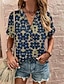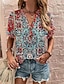 Dámské Tričko Tričko Henley Knoflíky Tisk Tónované Květinový Retro Vinobraní stylové Základní 3/4 délka rukávu Do V Běžné topy Víkend Vodní modrá Nebeská modř Růžová Léto Jaro Podzim