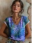 Dámské Tričko Tisk Grafika Kašmírový vzor Vinobraní stylové Klasické Krátký rukáv Do V Běžné topy Denní Vodní modrá Světlá růžová Fialová Trávová zelená Léto Jaro