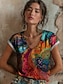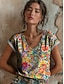 Dámské Tričko Tisk Květinový Grafika Graffiti Čechy Vinobraní Na běžné nošení Krátký rukáv Do V Běžné topy Denní Vodní modrá Nebeská modř Fialová Oranžová Hnědá Léto Jaro