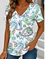 Americký den nezávislosti Dámské Tričko Tisk Květinový Grafika Graffiti Čechy Vinobraní Klasické Krátký rukáv Do V Běžné topy Denní Vodní modrá Léto Jaro